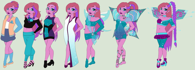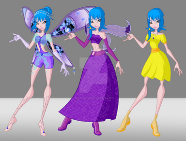 As for Harmonix's influence in her fairy form, I used Aisha and a little of Stella and Tecna's Harmonix forms. She doesnt' have much of her original fairy form because I never particulary cared or liked it.