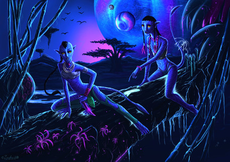 Ayn'atmey watching some sagittaria, a well-known occupant of Mo'ara Valley.Navi, Pandora, etc. all belong to James Cameron's Avatar