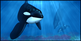 My matriarch, High Tide, and her brother with a wavy dorsal fin, Shell Cove.DAZ Studio | Iray