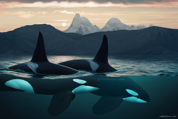 I used another program called Photomatix for some brightness and color post work. This is also two renders put together, using the same camera and orcas.