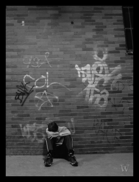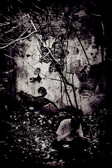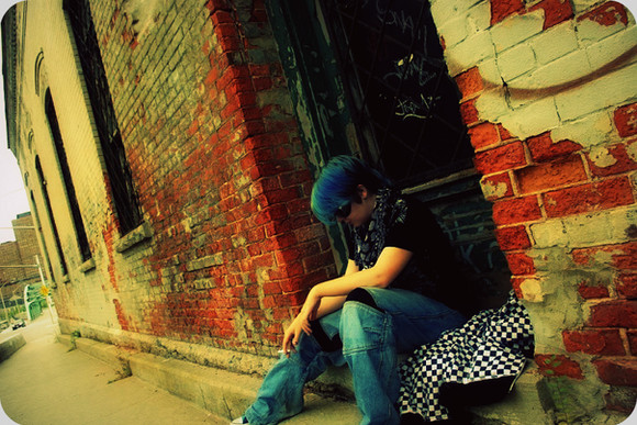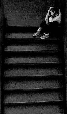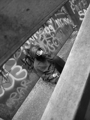 wow! this is an amazing photo! there's a lot of depth to it, it invokes a lot of feeling. she looks alone, but surrounded, like the world is closing in on her.