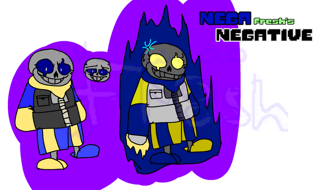 A double negative force, a sans that is no longer in a scared form, but a force filled with anger that will show no mercy. My heart have seen many sans filled with anger, but you have filled my soul with determination. This is Β a great making my artist *claps to the artist* I thank you for your making.