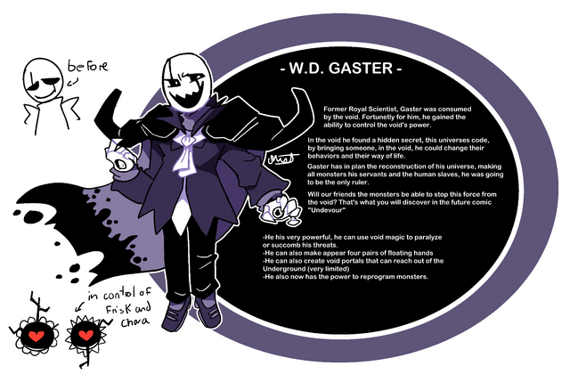 Negatale Asgore - He's rules over the underground with his wife trying to prevent any positive energy from leaving their castle. (Negatale Asgore wants to keep the positive energy to himself and his family not wanting to share it with the others).