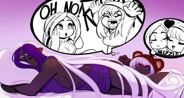 12h30 later after an awesome dual livestreaming with Lunareth, here’s the result of the main commission. Quain’tana getting a quain up in her bum for lordpanther, tied up to a bear. It's a thing now.A naga goddess concept, two space defenders and a page was also made during the stream. The nagas artwork that Lunareth did will go online tomorrow.