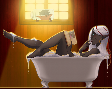 Drow lady bath time censored up, a commission for Vlashrod.Related content