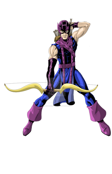 A mi Hawkeye me gusta asi, con este traje y estos colores, como este dibujo que esta joya! no como el de la peli, que ya se que es todo negro por estetica... pero nunca se ponen las pilas bien bien en las pelis...
