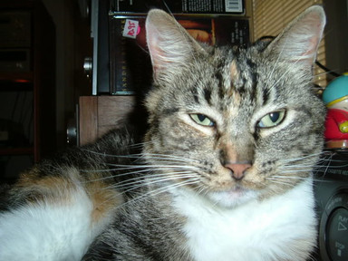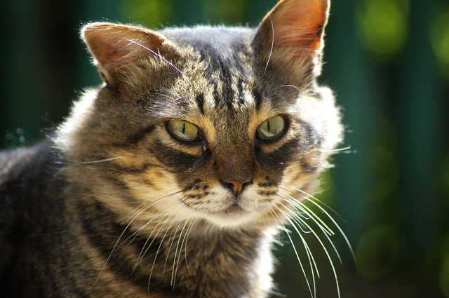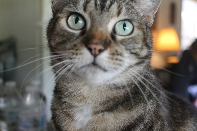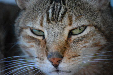 Yes, I caught her in the right moment today. One huge bluejay was sitting in the birdbath and the cat was watching every movement