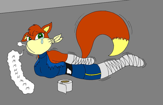 Well, we were going to cut to a short training exercise with Tori, but she seems a little tied up at the moment.A lovely little gift from www.furaffinity.net/user/whist… who needed a volunteer for practice. I couldn't possibly refuse such a lovely request. Mostly because of the cloth, but oh well!