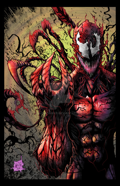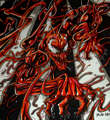 That is possibly the most terrifying image of Carnage I've ever seen!! Great concept, foreshortening, and colors!