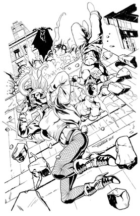 Pit pens, ink, white color pencil and inkwash on toned paper.