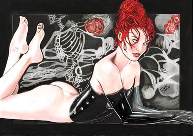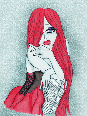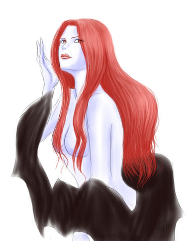 I love the hair on this piece. Very nice job on this! the cool colors complimenting the warm reds are a nice touch as well.