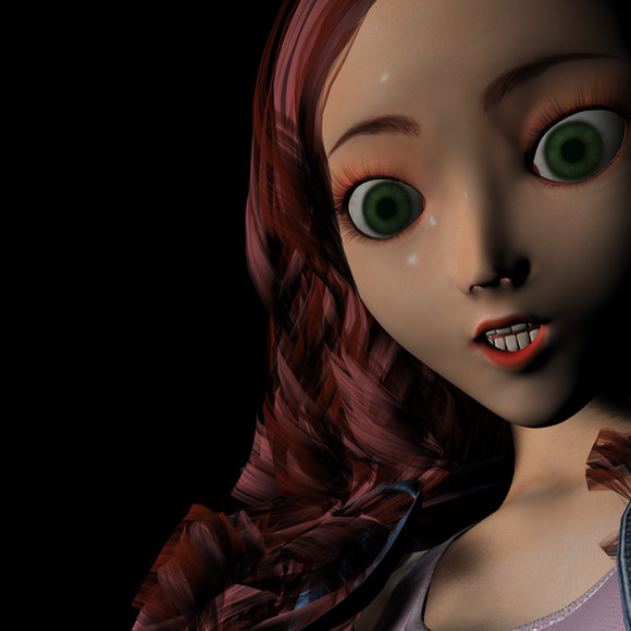 Lovely ^^ I like the hair over her forehead. I think compression flattened the rest of the hair a little. It's nice the way the jacket blends into the background though!