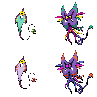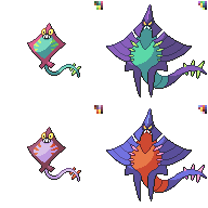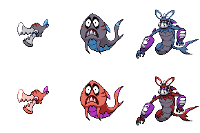 frequenzy, scryver and crystalbrawl are part of a five-part set of minor legendaries based on the five senses but i never got around to designing the other two (smell and taste) but i pictured a flowery thing and a thing that eats anything but never got much further than that; there were also some ultra beasts i never did sprites for i don't think