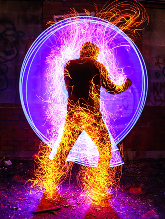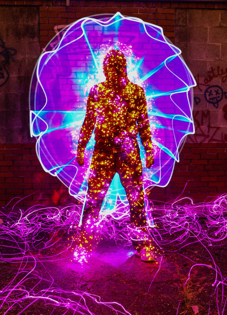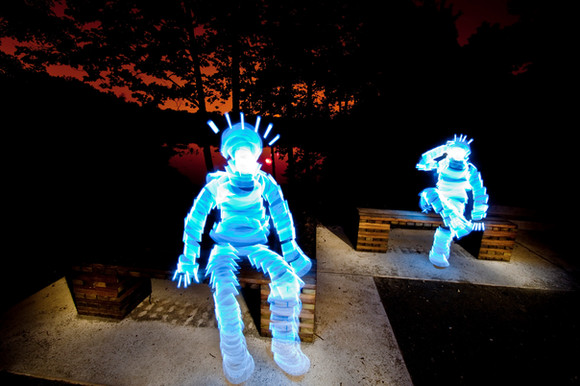 thanks man. the paintbrush i used is a set of battery powered string lights positioned on a 2ft pvc pipe. the glyphs are a 200 lumen dorcy flashlight with focusing beam.