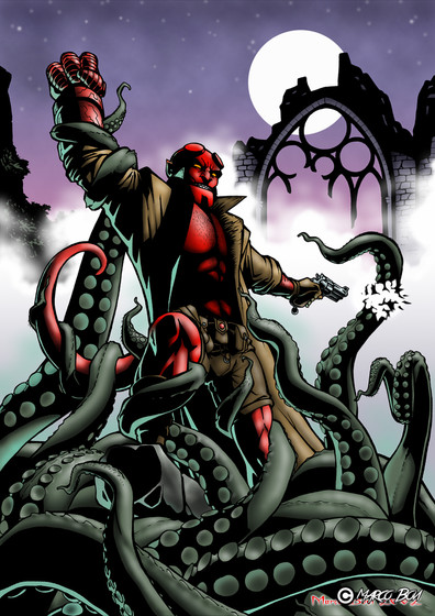 Jack Eldredge did the lines to this Hellboy piece a few years ago and submitted it to the Hellboy tumblr I curate. I asked him if I could color it and here we are!It's the first full color job I've done on something, hope you enjoy it.