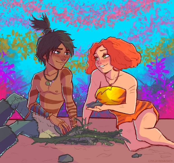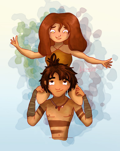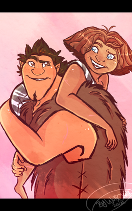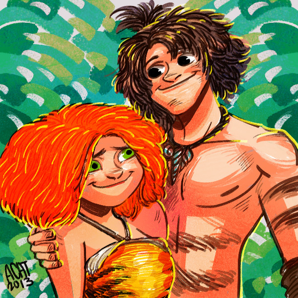 Eep and Grug (daughter and father) from The Croods.This drawing on Tumblr: zimeta.tumblr.com/post/4794300…