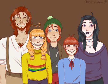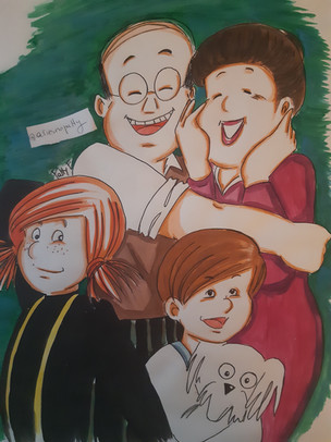 Now that I'm back from vacation I can finish my Simpsons miniseries of drawings!Here are the Flanders (Maude, Ned and their two boys Rod and Todd). They may be annoying at times, but you gotta admit they're a happy, healthy family and very good people.