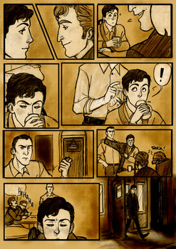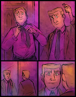 I get the impression Otto is not looking at himself but up, towards his hair. Could it be he's a creature of deeply ingrained habits and his subconscious self is rebelling against his conscious "orderly" self? Whatever it is, Panel 6 shows us he is definitely upset about something. Only time will tell.