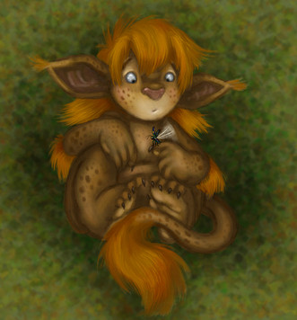I love the painting technique you used on this one.It's nice and smooth.I also like how the insect(to me) looks a bit scary,but also really friendly.I can see in his face expression that he'd do anything to protect the girl.I also really like the story.