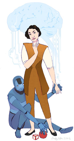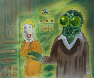She's sitting on an interocitor here (which I scaled down a bit to fit into the picture), and behind her is a mutant--beasts bred for alien labor on the planet Metaluna.