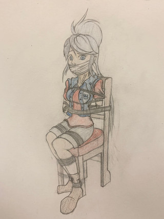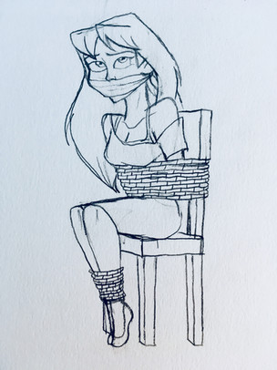 Jakki, besides being a singer, is also Streamer. Known as "GazelleGirl59", she usually does tutorials and Gameplays, in addition to live chat with her followers. One day, during one of her streams, a thief entered unnoticed, saw the girl on her computer, and without hesitation, approached the girl to tie her up and gag her in her chair. Taking a couple of valuable things and leaving that singer tied and gagged to her fate.Β Not without before, also tie her dog Shaka for that he doesn't bark and does not indicate that he was inside.Jakki belongs to