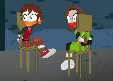 SWAT Officer #2: I hear muffling from that door! *Opens it to see Jakki and Shaka tied up*