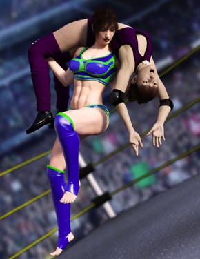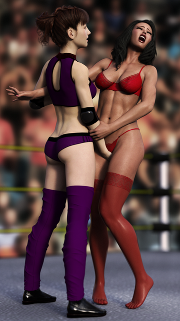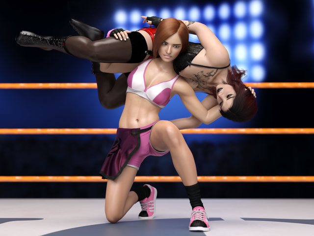 Camille Cosworth puts Kylie Sanders in a Torture Rack.Not one of Camille's normally preferred moves, but she's got the strength to make it work and it's simple, effective, and painful.