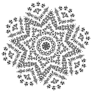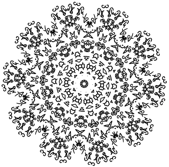 This is a high resolution transparent png of Dscript text reflected to produce snowflake, disc, radial and other effects.
