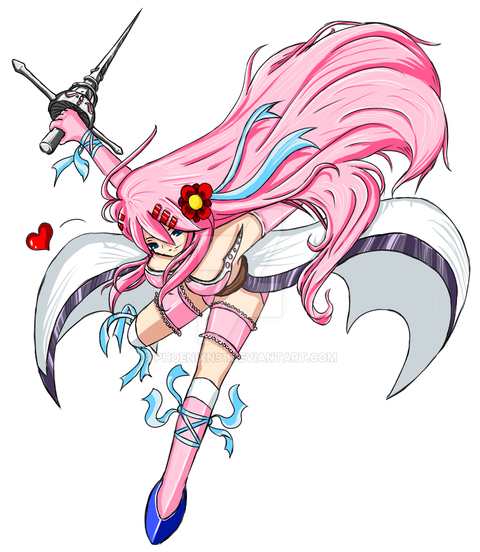 Elphelt is from Guilty Gear. She hides her gun in flowers, just like the Terminator. She's practically a cross between the T-800 and Tendou Rushuna.Stuck with mostly cell shading on this one because it seemed to fit.