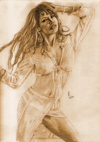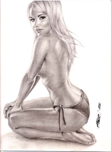 yeah, i know. i'm a piece of shit for drawing another worthless supermodel after saying how much i hate them. i just wanted to screw around with highlights on dark paper. the title probably fits me just as well as the subject. i spent about 10 or 15 minutes with the drawing and a good hour or two with the shading. i like all the highlights, but the shadows in this chicks torso were kind of funny. probably should have used my artistic license to make it look nicer. oh well.Related content