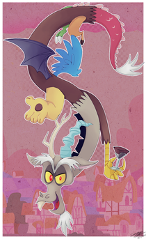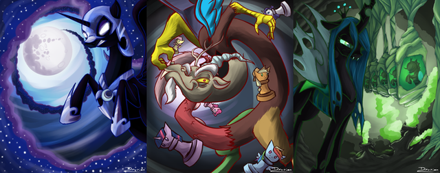 The ponies as pawns is an interesting concept. Great work, Discord's posture is really interesting.