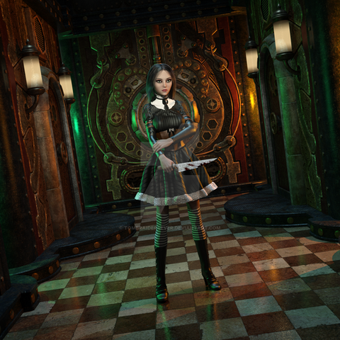 #3dcg #alice #candle #cat #daz #dress #hallway #mcgee #postwork #stockings #violett #dazstudio #light #wonderland #cheesirecat