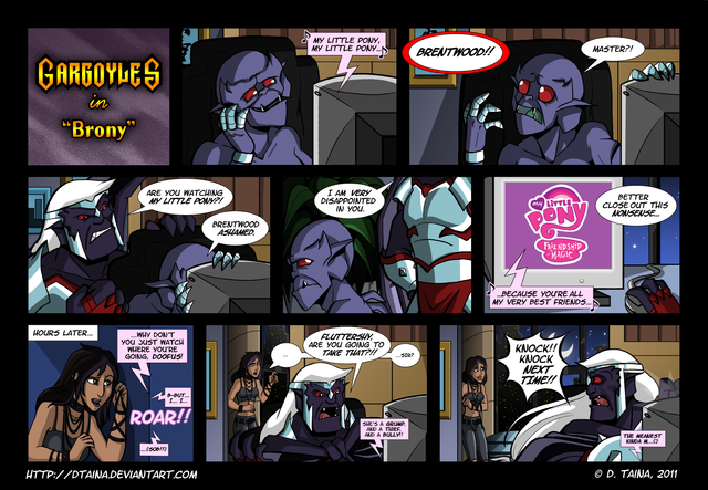 WOW, it's finally done. Here's "Awkward," the sequel to "Brony" (dtaina.deviantart.com/art/Bron⦠), otherwise titled "Use every known room from Nightstone Unlimited or bust!" This one took me far, far too long. Far, far, far too long. But it's definitely my most visually-interesting comic...Funny story behind this one. I quit my job a few hours after I posted the original inks and it's been kind of hectic since then. My ex-boss called me on my cellphone that day and started screaming obscenities at me, and I decided I wasn't going to take it anymore, and the rest is history!