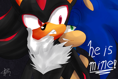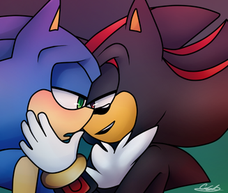 Its a Shadow x Sonic drawing, Sonic likes Shadow in the gay way, and he's blushing.