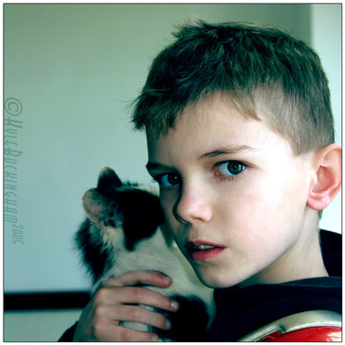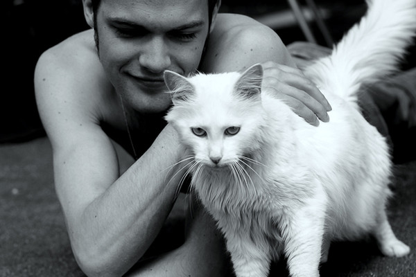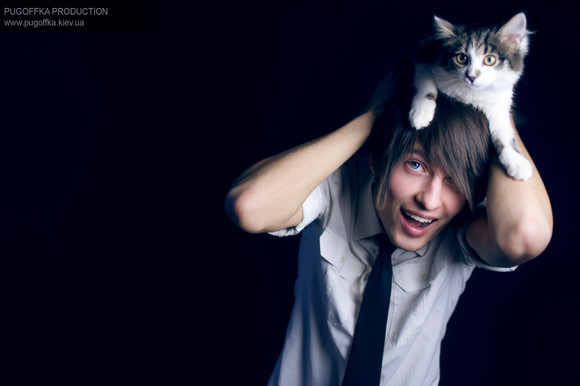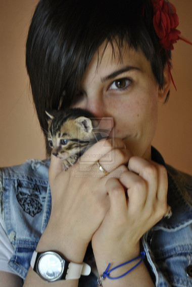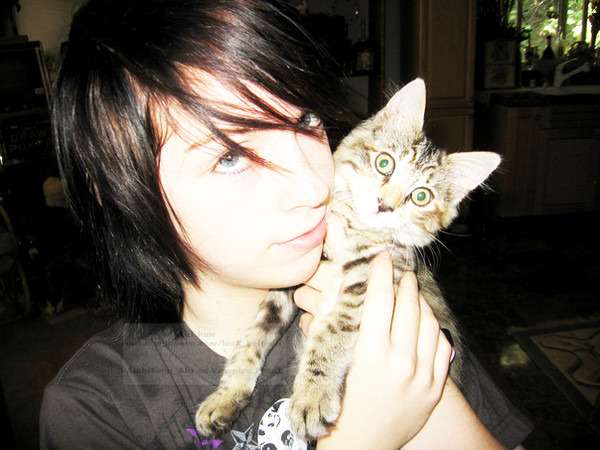 Another picture of the feral kitten my boyfriend found--this time being held by him. She still doesn't have a name :/ But she's gotten a lot more energetic now that she's been eating regularly--and his other cat Sophie has taken to being little kitten's mommyPhoto and edits [c] Duces-Wild