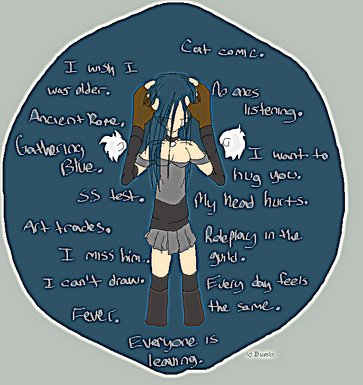 Likes:quiet, anime, being lazy, sleeping, singing, music, sketching, guns, colorful socks, skeleton keys, ramen, sushi, starbucks, combat boots, eyeliner, wrist bands, stealing, cell phones, video games, thunderstorms, corssdressing, cursing, eating people, cosplaying, boxers.