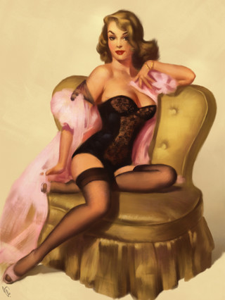 Very nice! I like how you put a lot of detail into the face, so that the viewer's eye is lingering there longer. It makes you focus on her face instead of, ohh I don't know, her lingerie. xD It's sexy and still relaxed, I really like this one.