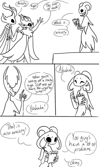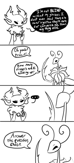 I once joked that Broken Vessel snapped his fingers to get people’s attention, since most people can’t hear void speak. After that I kept the idea that he snapped his fingers a lot, I thought it was funny. The idea here is that Ghost never figured out how to snap, so they would just say “snap” while making the motion.