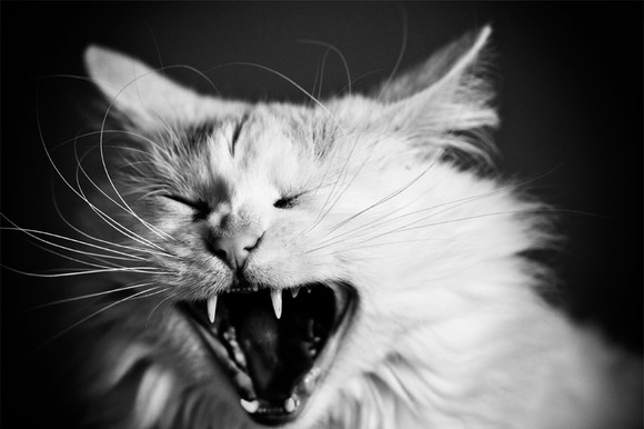 That's great! You caught the cat at the perfect moment to capture an expression that would make most people laugh. You managed to capture only what you wanted in focus and nothing else as a side. I can't focus else where and that's the point. I really like how you have the eyes in this picture. They have a unique color that is captured well in the image. I'm just in love with this piece because it looks so phenomenal.
