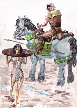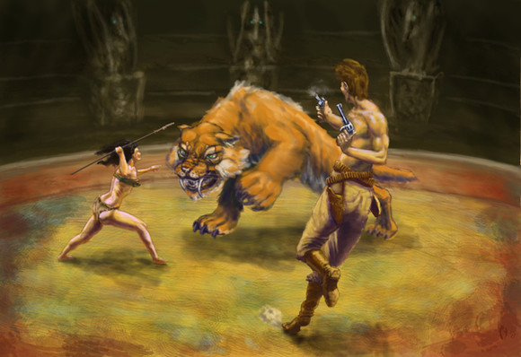 This is great. All the little details like the ring on his finger and the crows flying in the background are a nice touch. I love the curved background as well, it adds a lot of movement