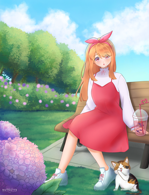 Since I've just finished all 11 exams and currently work on request and stuff, I feel nervous, a little. So sometimes I draw random things to give myself some rest. If it's a right thing to say so. I thought it would be OK to upload this, because I don't like the feeling of not doing something when I can. I mean, I don't want account to stay empty without publications for long. Even if the publication's quality is questionable. I feel so stupid writing this like I forgot English entirely.,I think it's pretty obvious who's the girl on the drawing, haha... that's probably the first thing I think of, while drawing freely. No tags todag