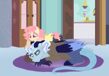 "Well, then! We'll just have to have a talk with the old mare, won't we? No son of mine will be sent to Time Out on account of making a little chaos!" He winked at his son playfully, snapping his finger, causing the little stool at the corner of the room, Jinx's Time Out corner, to disappear. Jinx grinned at the sight.