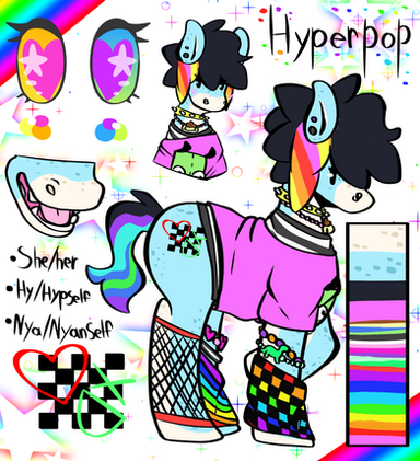 So there it is... My insanely-neon-crackhead OC, Hype. She actually just got stuck in a pot plant when she was a baby and became high forever... yeah that makes sense. Shows you I know nothing about drugs lmao.I originally adopted her from m4ns0n--cl4ws and did TONS of tweaks so she was perfect <3 one of my favourite redesigns ever.