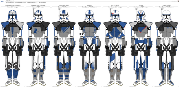 CT-2000, also known as Tic, was the sixth member of Domino Squad later an ARC Trooper in the 501st Legion. Tic was born on Kamino like every other clone. When he reached the adult-stage of Clone Trooper, he began to show a defect in the way of stuttering, resulting in his nickname. As a result, he was going to be terminated by the Kaminoans until bounty hunter El-Les and Jedi Master Shaak Ti had the Kaminoans test if Tic's combat capabilities were hampered by his defect. When the Kaminoans caved to the Jedi Master's request, the oblige. However, the Kaminoans rigged the combat test by having its difficulty be extremely high. What the Kaminoans discovered from the challenge shocked them. Tic managed to not only beat the nearly-impossible challenge, but he beat it with extreme skill and intuition. The Kaminoans later determined that Tic had not one, but two genetic defects, the one that caused his stuttering, and the second one greatly increased his reflexes and reaction time. Due to these results, the Kaminoans reluctantly allowed him to live, albeit the made sure to keep a close eye on him for study. He would graduate with the rest of Domino Squad and would be assigned to the Rishi Moon base. Tic, along with CT-5555: Fives, and CT-1409: Echo managed to survive the attack thanks to CC-2224: Cody, and CT-7567: Rex.Tic, along with the rest of Domino Squad's surviving members, were assigned to the 501st Legion. When the 501st helped protect Kamino from a Separatist attack, Tic managed to help hold off a large group of droids alongside Fives and Echo. This resulted in him being promoted to the rank of ARC Trooper with Fives and Echo. Tic later went on the mission to rescue Jedi Master Even Piell from the Citadel on Lola Sayu. There, he would witness Echo's presumed death. He later join Fives, Jesse, and Hardcase in defying Jedi General Pong Krell's orders. Tic would later witness CC-1010 kill Fives.
