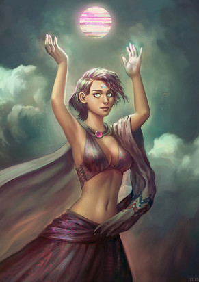 The color choice you used is perfect for the emotions portrayed in this piece. She seems very mysterious and it makes me want to learn more about her! Really great job on this! *applauds*