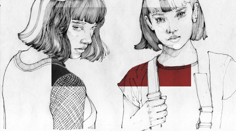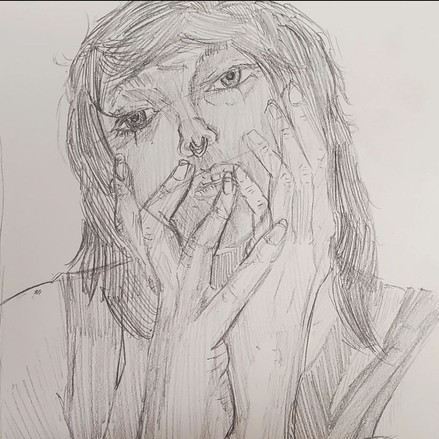 ref photos of myself taken in Photobooth + pencil, pen, and color&blur in GIMP