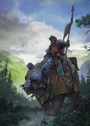 the young giddily holding his spear and awaiting orders