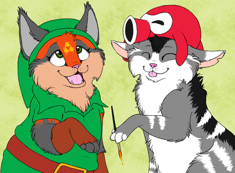 This was a kinda on-the-spot trade I did with in my absence from dA. :3She did the one on the right of myself and my boy, and I did the one on the left of her and her boy!