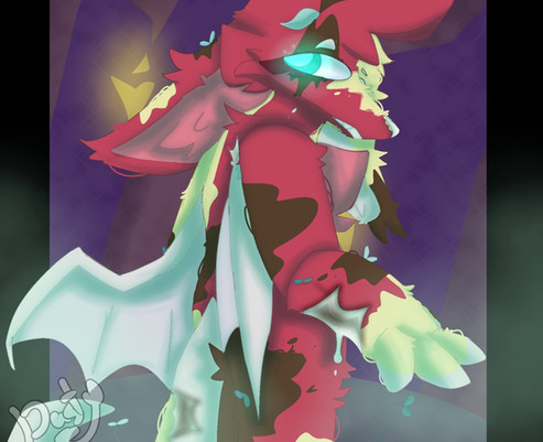 Everest is shy but extremely protective of those they love! More loyal to their bestie Amare (The one who gave them their necktie) than their partner Bat. They were mutated by a monster causing them to have multiple mouths and strange wings (They did not pass any of this on to Poprocks).