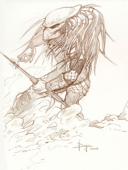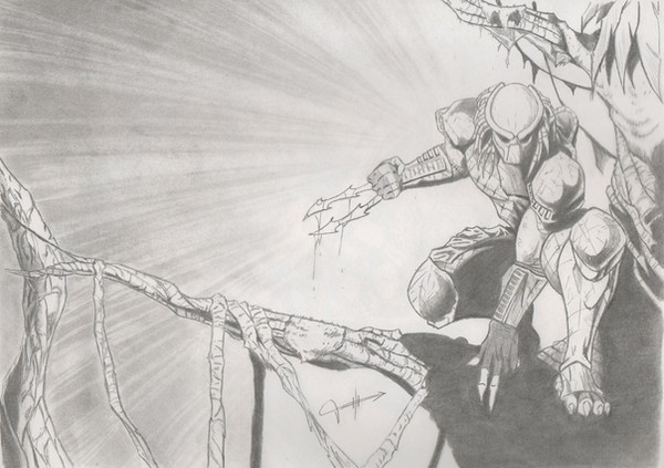 EDIT* [link] to fully rendered versionI saw this pose whilst reading an AVP comic and had to draw it, its awesome. I like seeing the Predator as an agile hunter, not so much a large brute. Credit to Mel Rubi for his great work.